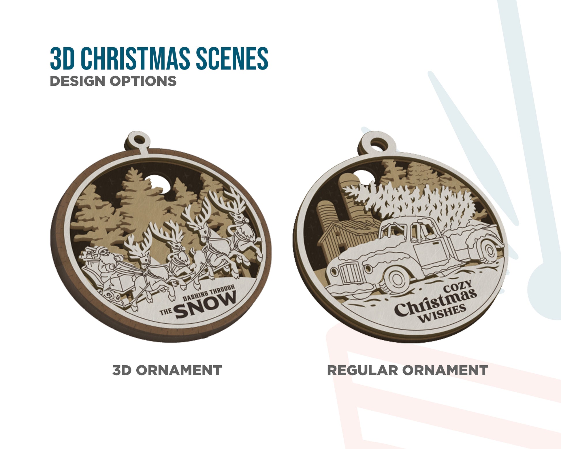 Each ornament style is available as either a stacked 3-layer design or a 3D layered design. The difference is that the 3D layered option has spacing between each layer and a finished border joining all three layers together.