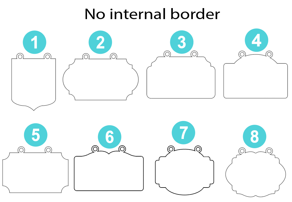 Please list the sign shape of your choice (#1 through #8) in the Personalization box above. You can find the picture with the options by scrolling through the photos at the bottom of the page. As another option, you can choose if you want the internal border added or not.