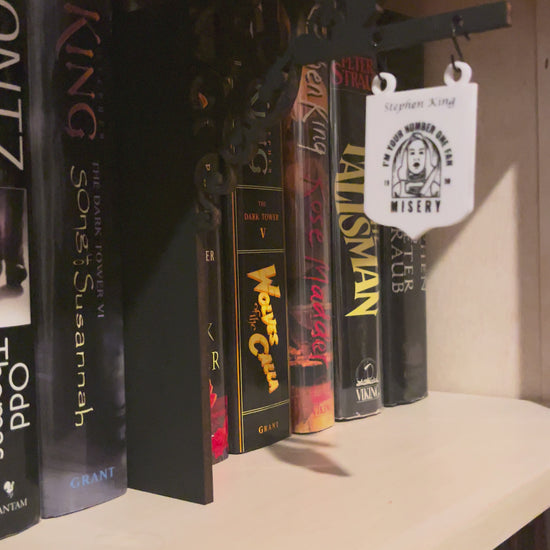 Organize your bookshelf collection with our laser-crafted Book Genre Dividers paired with customizable and interchangeable hanging signs. Each divider is made from durable wood and will be painted black (unless otherwise requested), while the white hanging signs come in eight distinctive shapes for personalized clarity. Choose from a wide variety of genres to match your library's needs, bringing both style and functionality to your bookshelf. Perfect for libraries, bookstores, or personal collections seeking professional-level organization. The signs attach to the divider with small black "S" hooks (two included with each sign order).