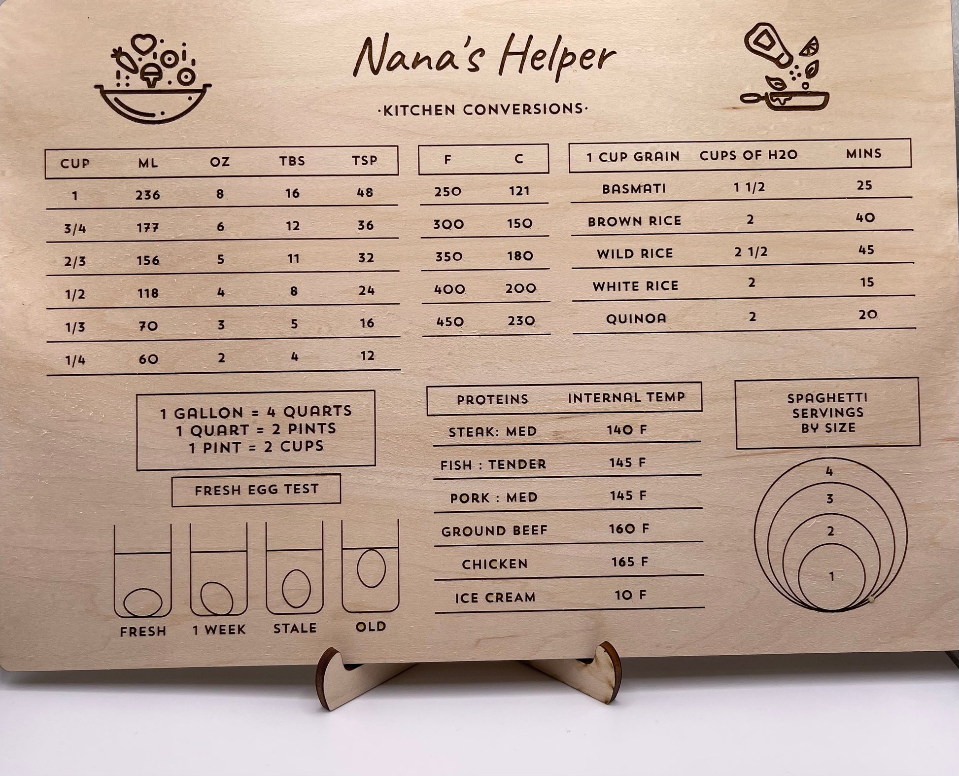 Are you looking for a practical and useful tool for your kitchen? Are you tired of looking up measurement conversions online when you're cooking? Well, look no further! This is an "all-in-one-place" reference for common kitchen measurements. You'll never have to interrupt your process to pull up the internet and see how many teaspoons are in 1/4 cup again. I especially like that it details the internal temperatures for different types of proteins...and RICE! Did you see that? So helpful! No more guessing on how much water is needed for each type of rice.