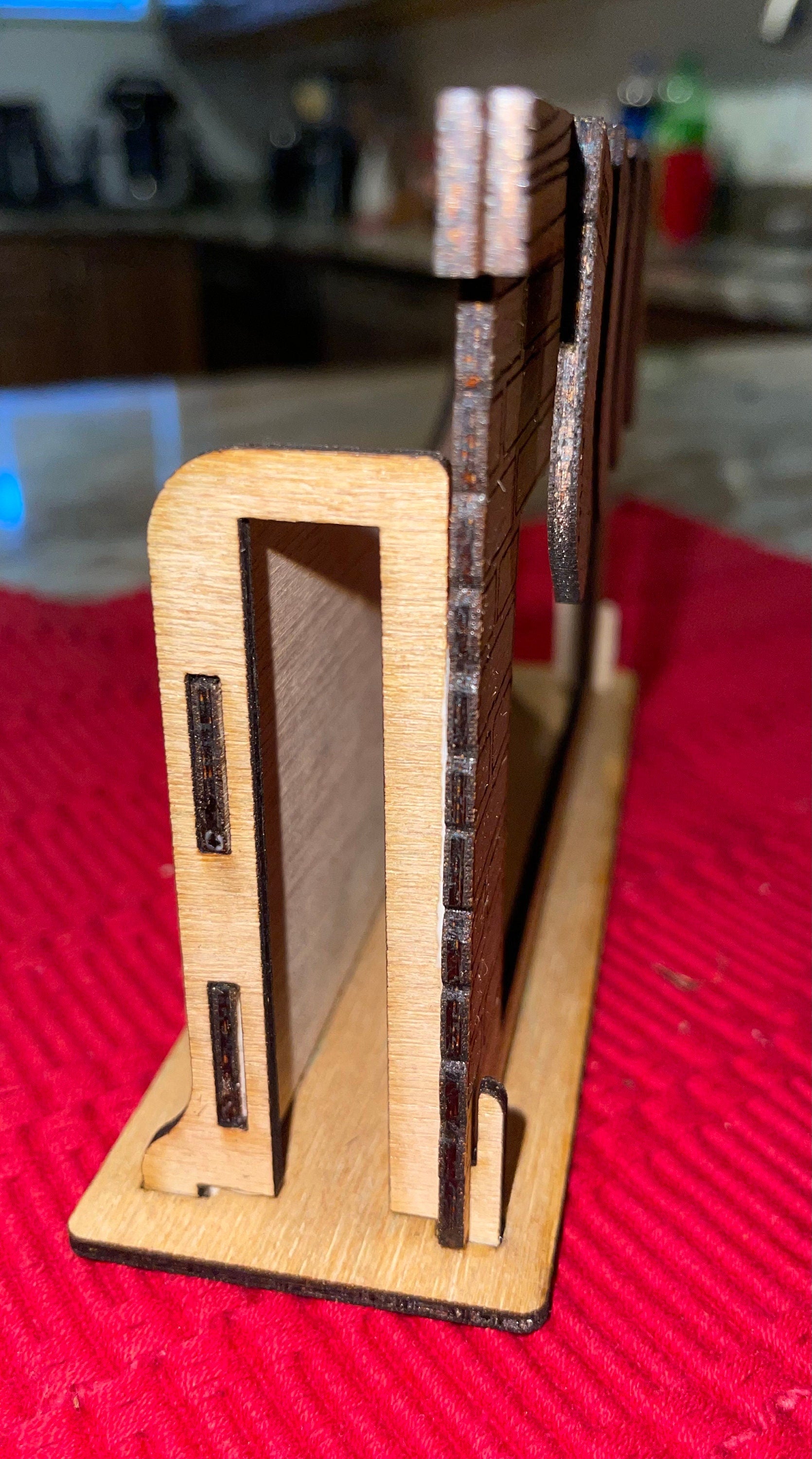 Isn't this just the cutest way to play any video on your cell phone? Just slide it into the Fireplace Phone Stand and sit back and enjoy. Or you could just play a video of a cozy fire, found on Youtube. It's made 100 times more special by personalizing the stockings that hang on the mantle. The screen opening measures 5.10 x 2.63". I have an iPhone 12 Pro Max and that's what I use to display a fireplace video.
