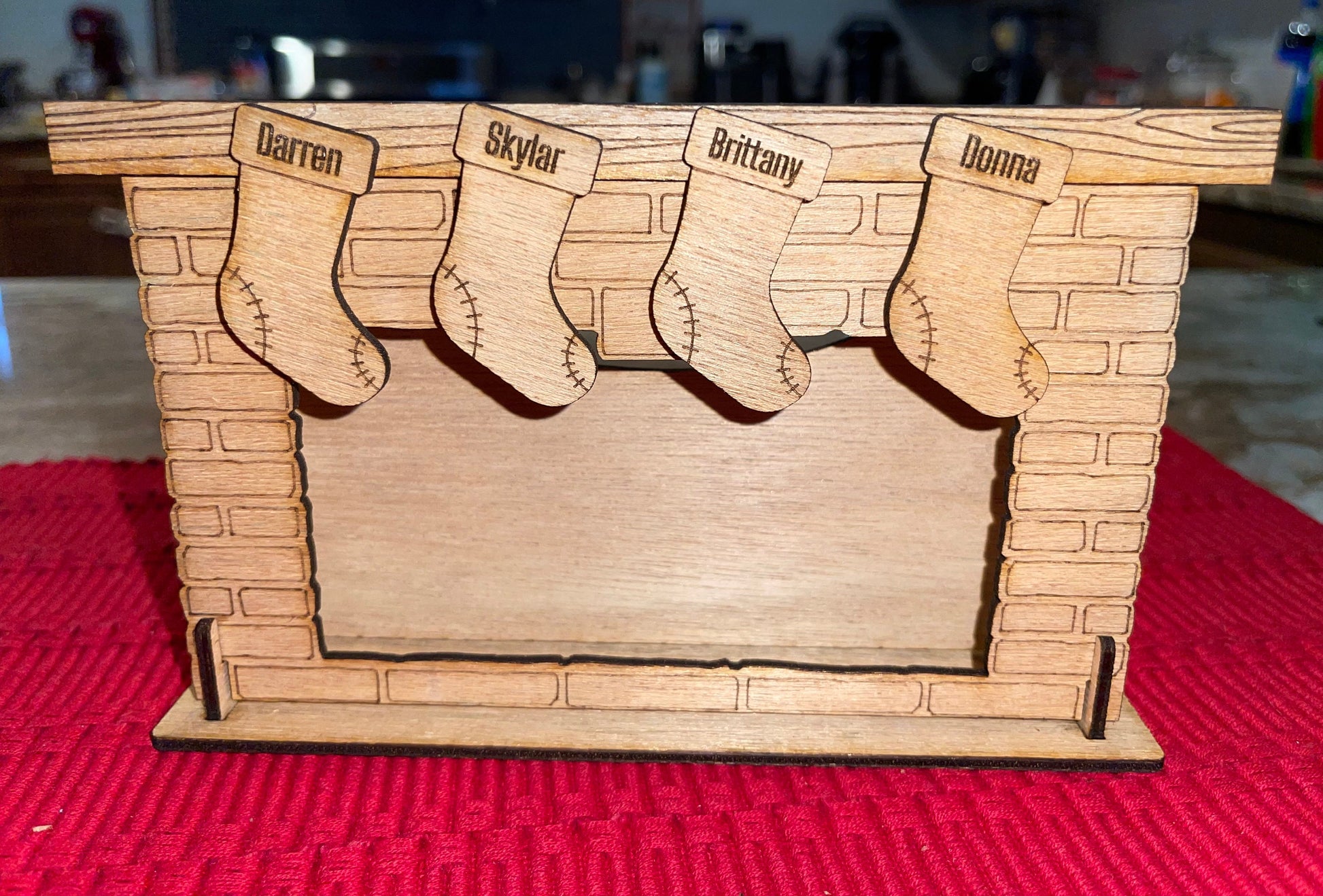 Fireplace Phone Stand with Personalized Stockings