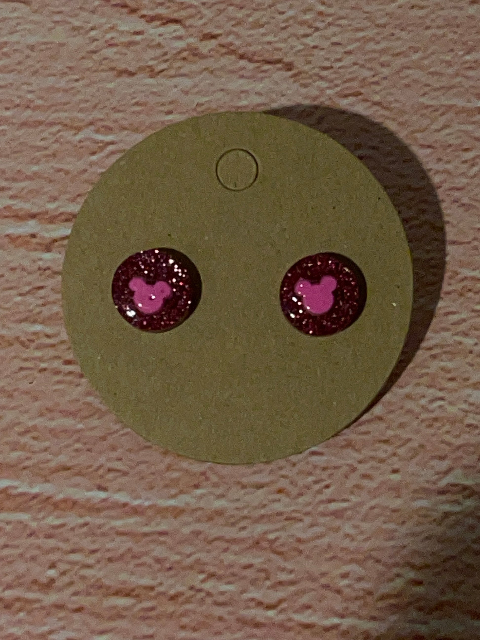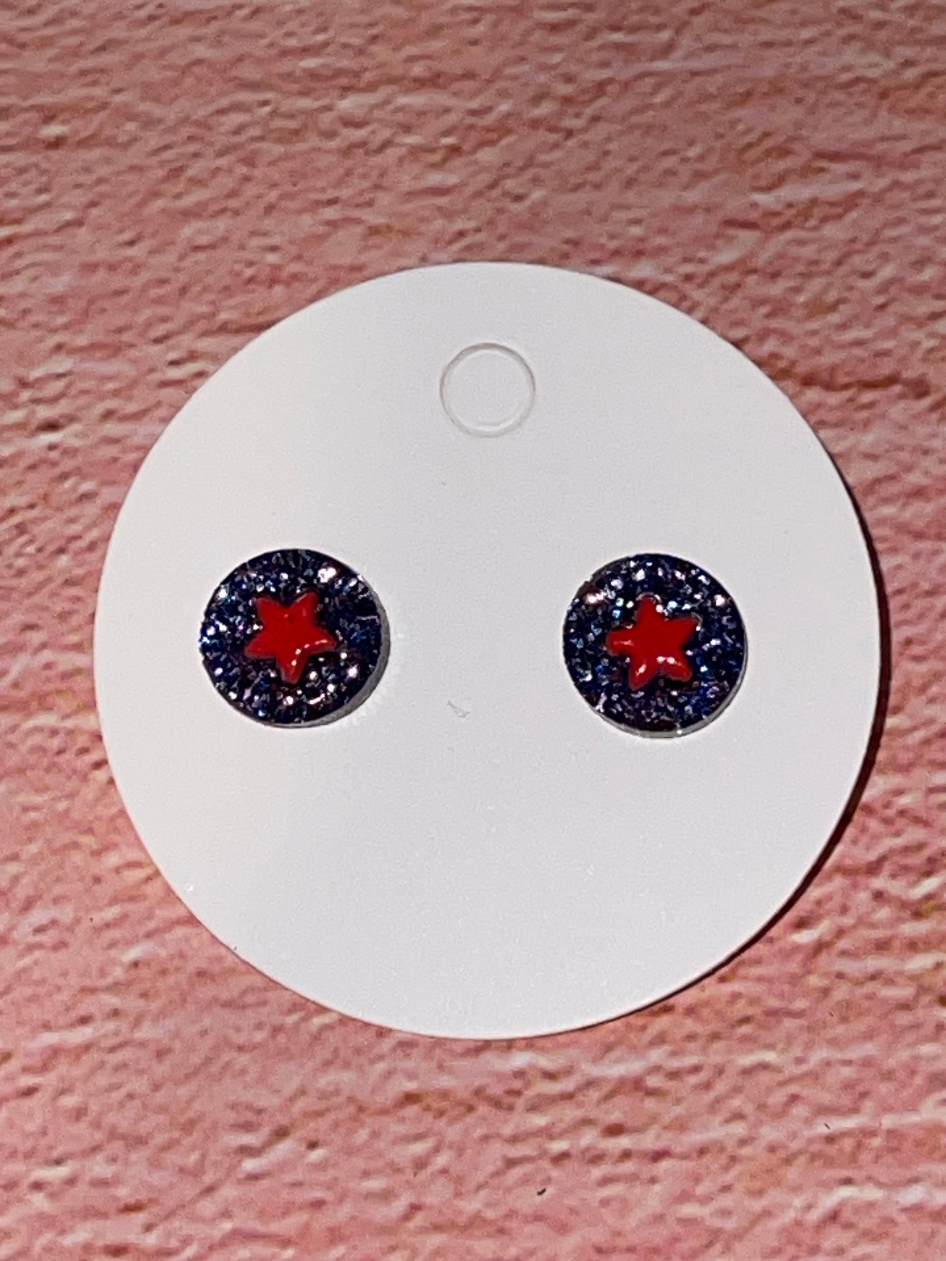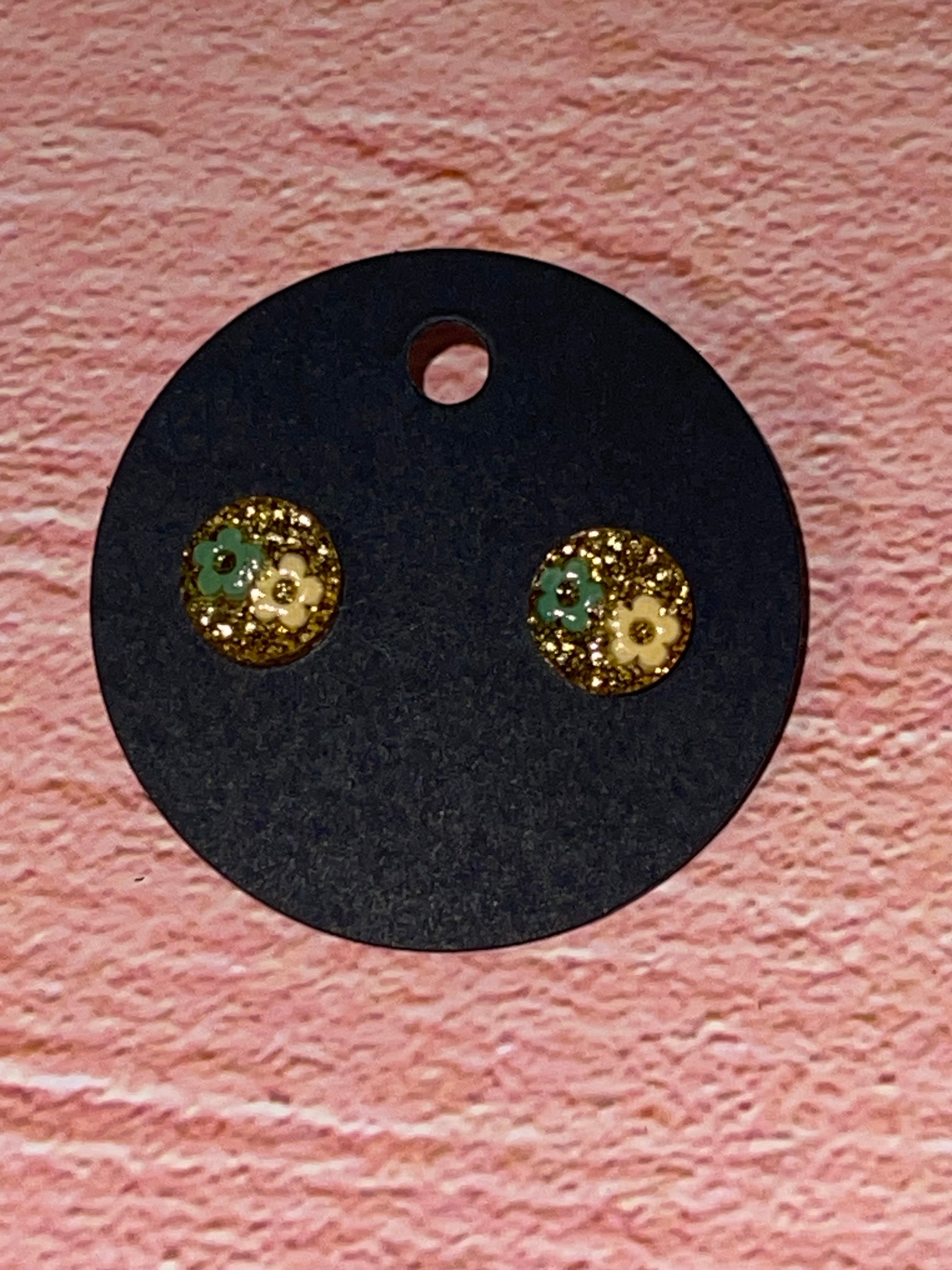 These round stud earrings feature charming nature-shaped designs layered on top and are sealed with a glossy finish for lasting shine. Measuring just under 0.5 inches across, they offer a subtle yet playful accent perfect for everyday wear or adding a touch of whimsy to any outfit. Durable and lightweight, these earrings combine style with comfort for a delightful accessory choice.