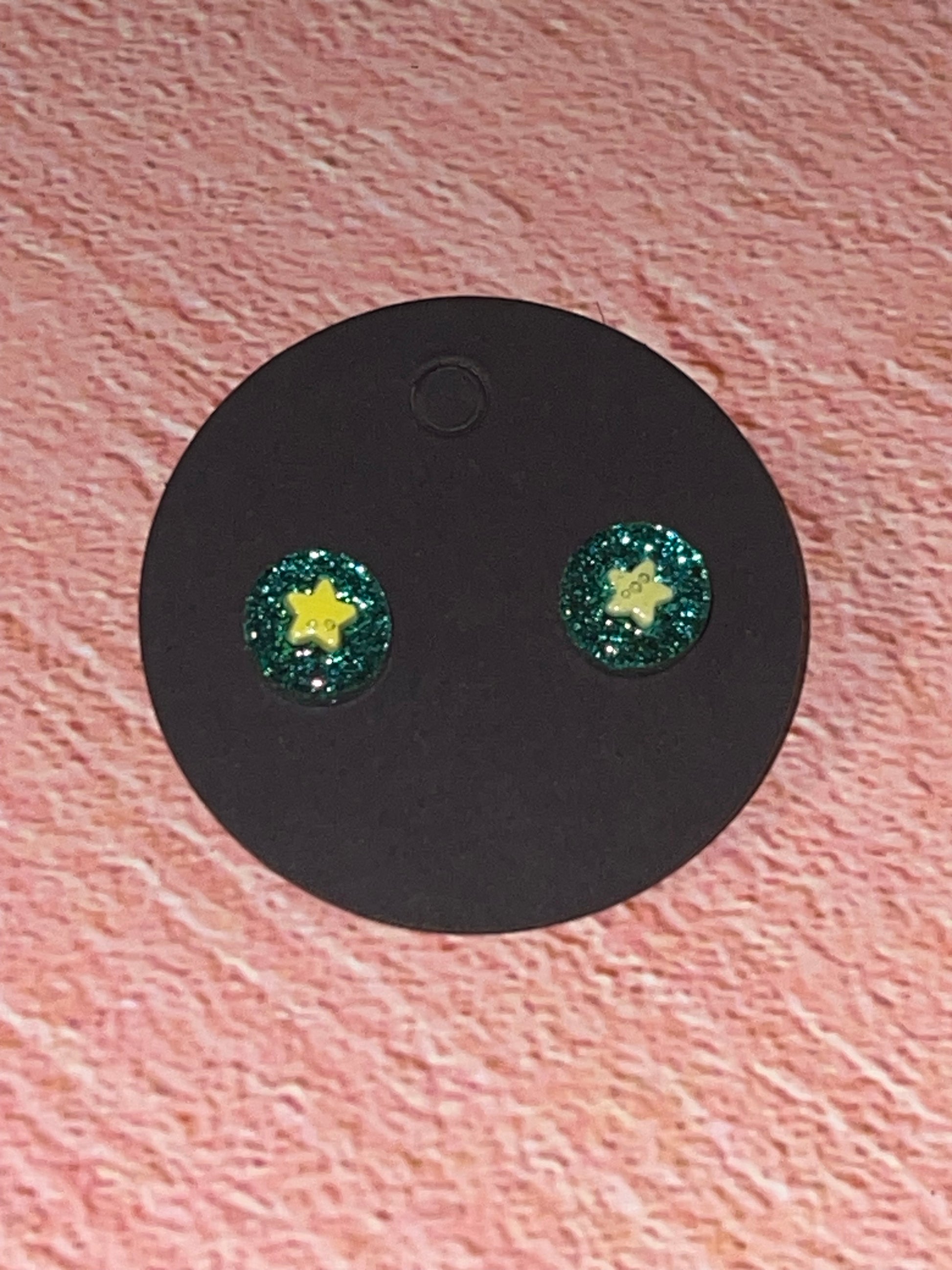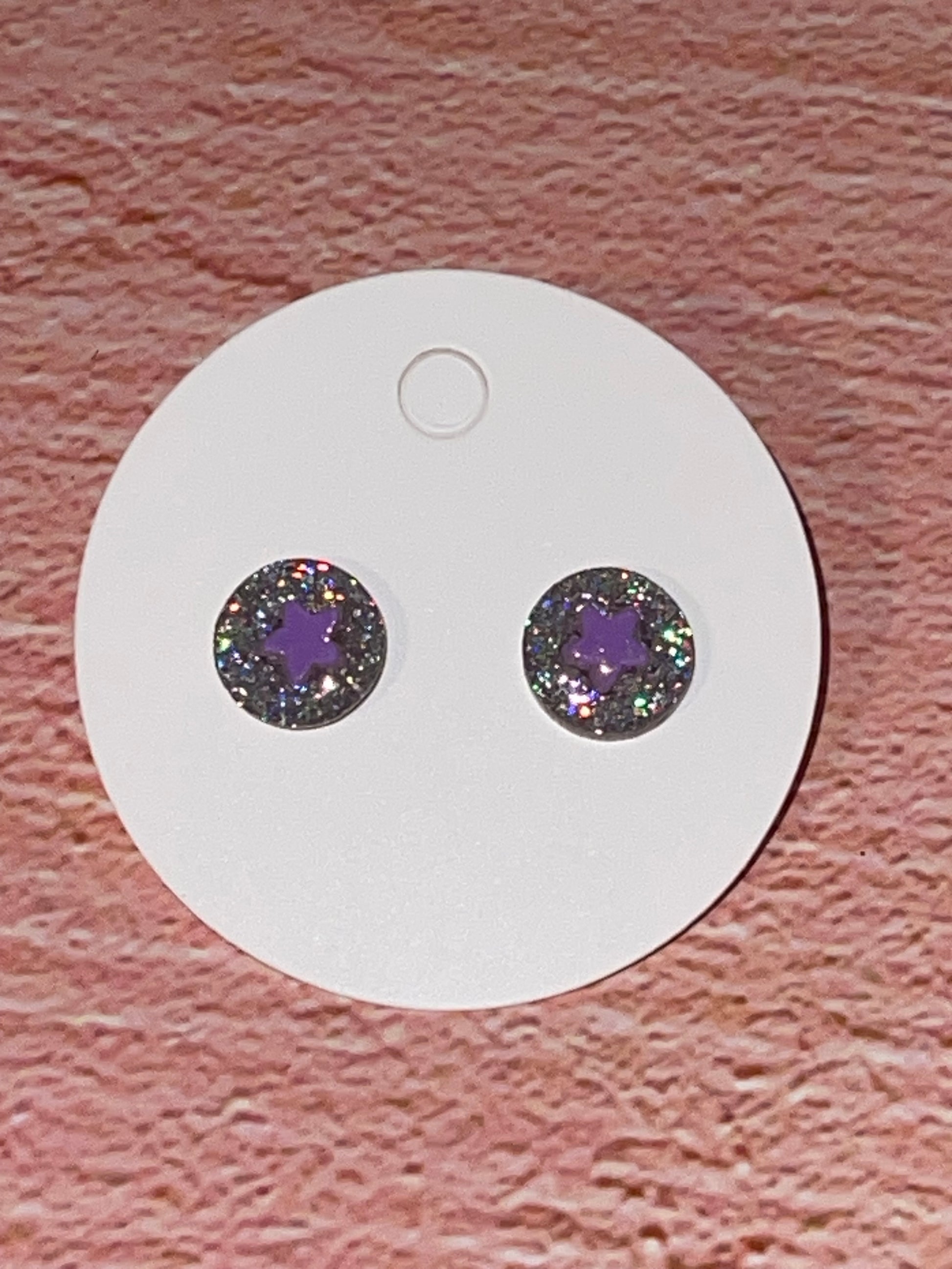 You can choose the color acrylic to pair with the shape of your choice to make your custom pair of earrings. The sparkling and glittering options are: