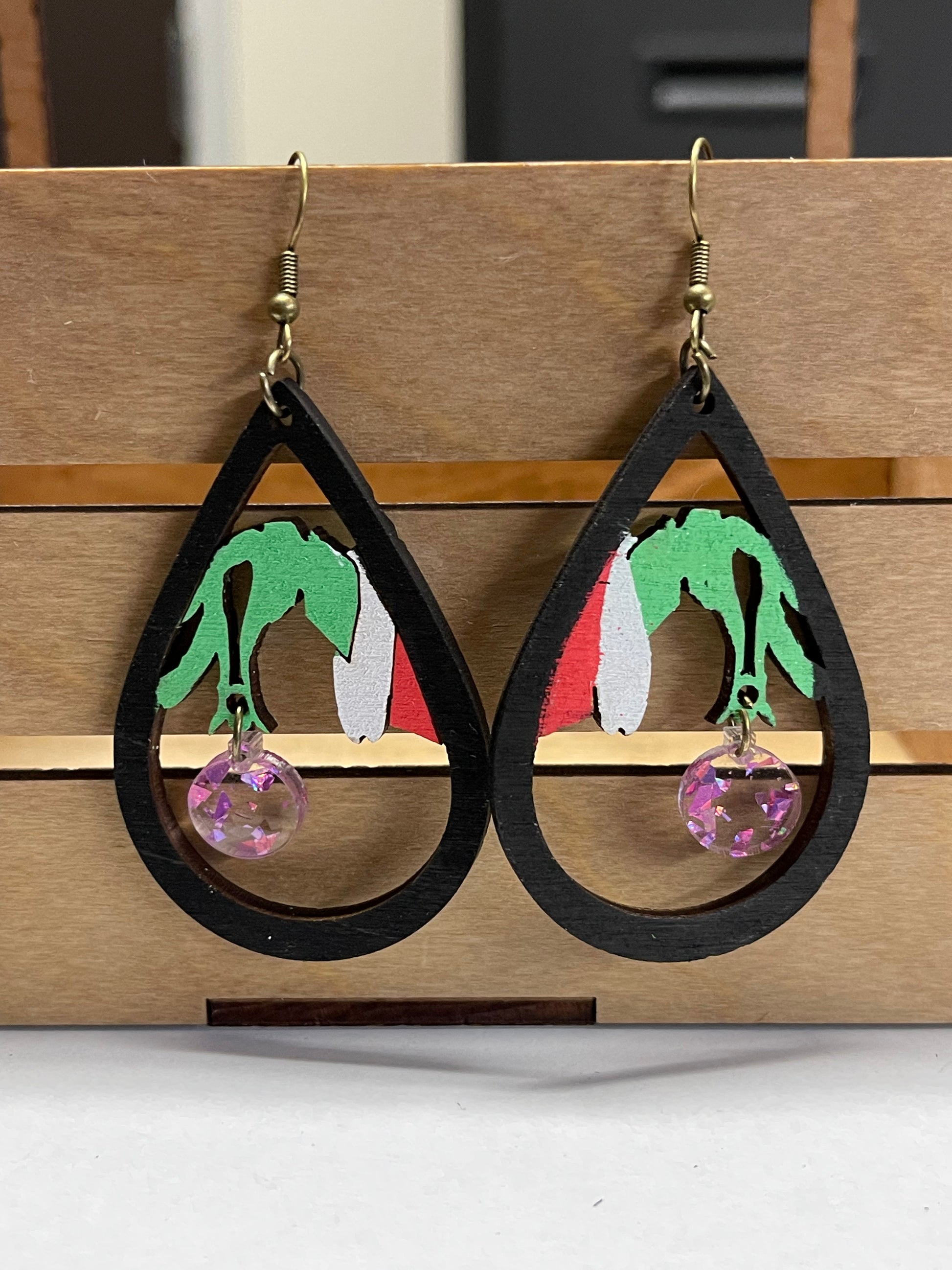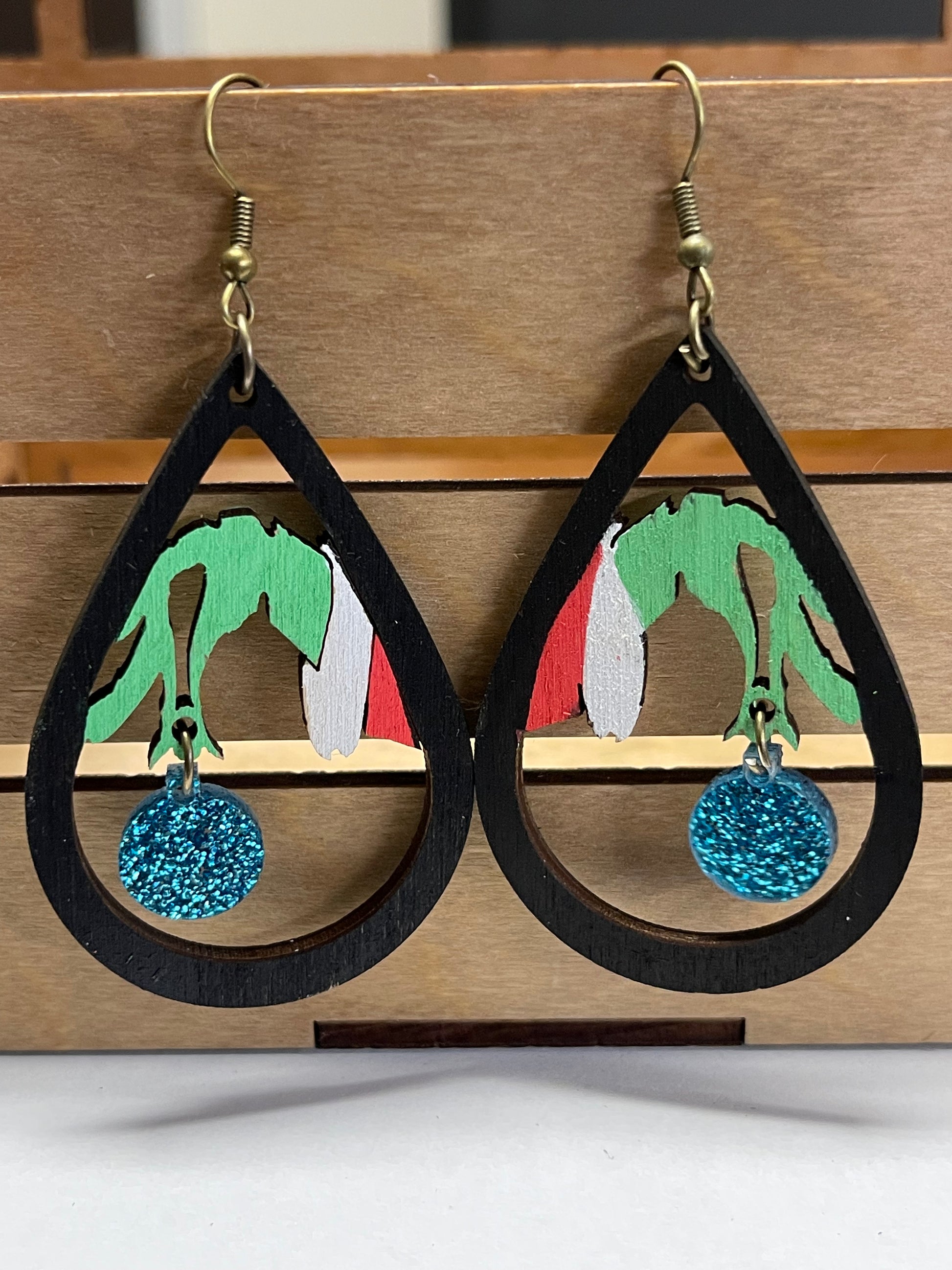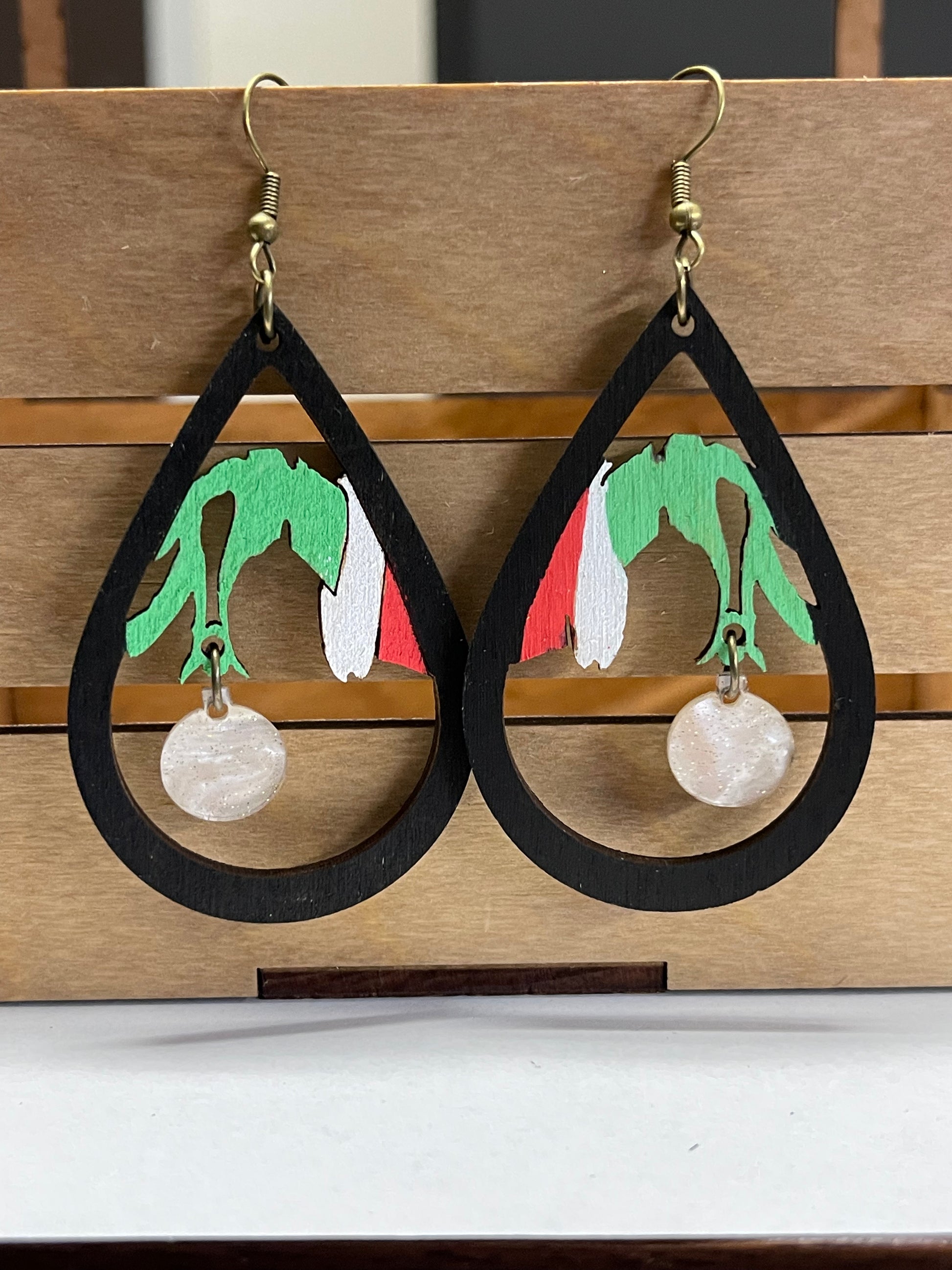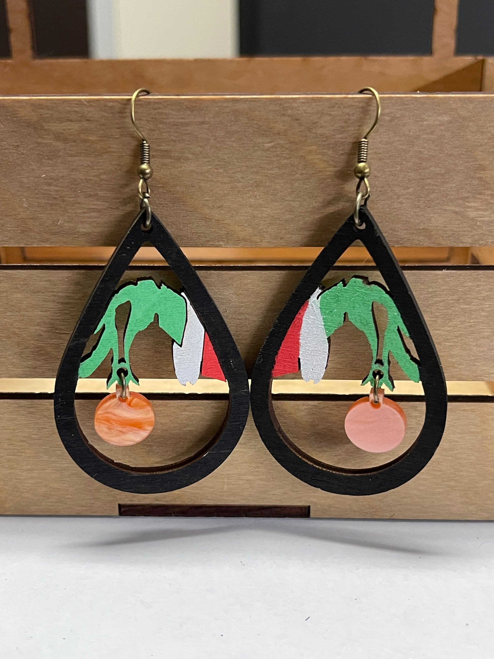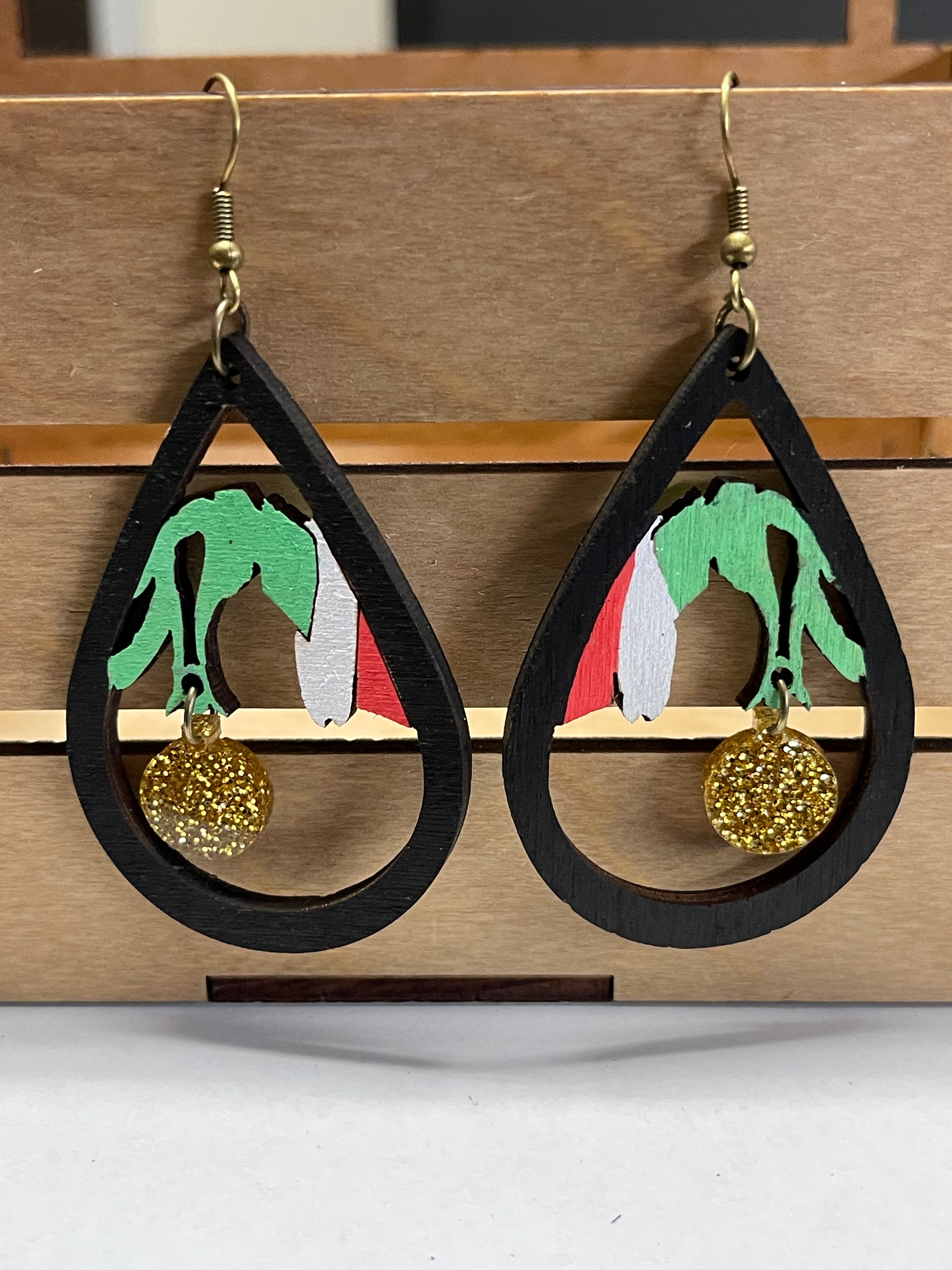 Introducing our Grinch Hand Dangle Earrings - a must-have for any fan of the classic holiday story! These unique earrings feature the Grinch's iconic fingers holding onto a colorful acrylic ornament. Made with quality wood and acrylic materials, these earrings measure 2.5" in length. Add some festive flair to your wardrobe with these fantastic dangle earrings!