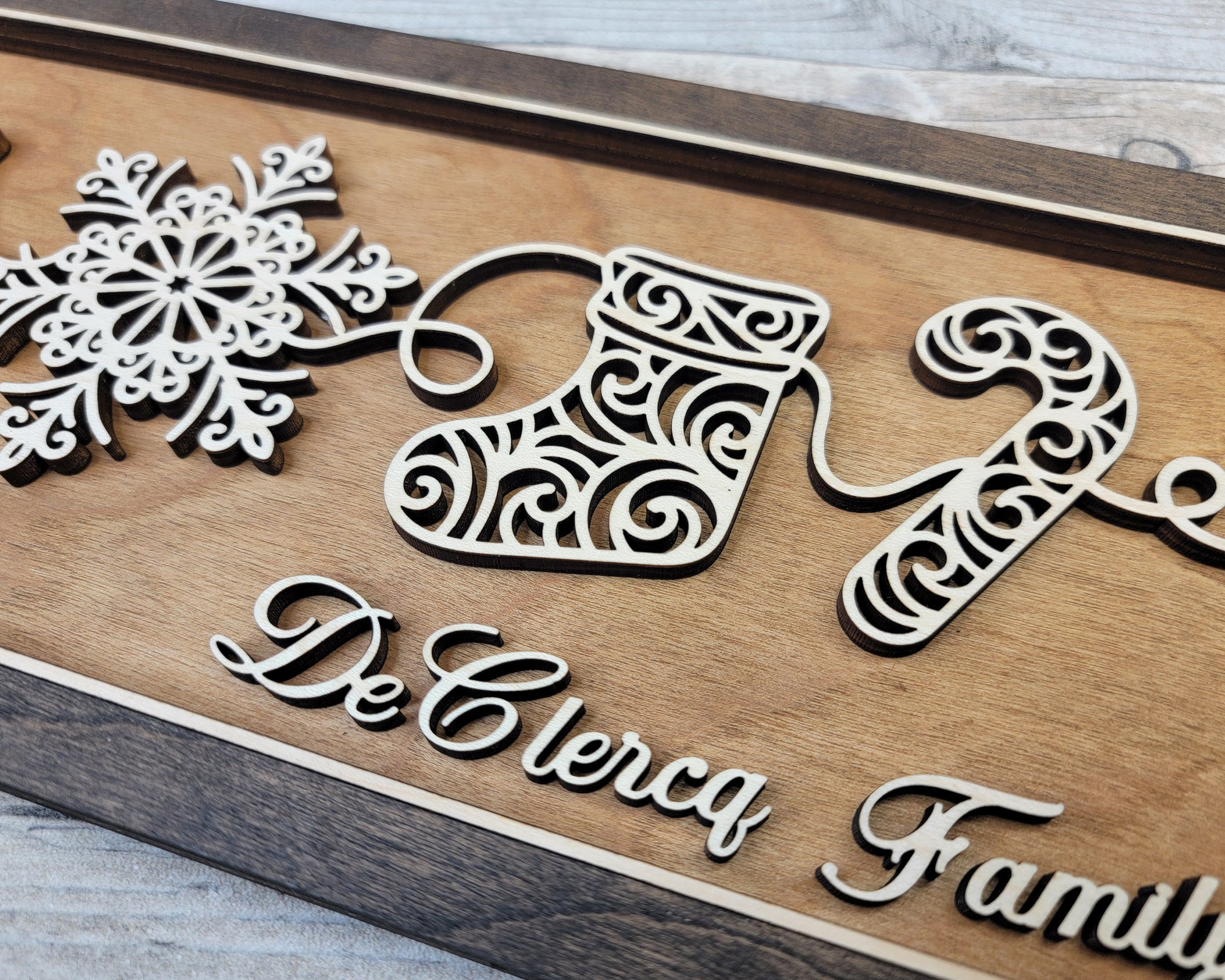 Celebrate the season with this elegant Holiday Line Art Signage, featuring classic festive elements rendered in sophisticated line art style. This three-layered wooden sign measures approximately 18.5" x 5.5", making it an ideal accent piece for entryways, mantels, or living spaces. Personalize it with your family name and a meaningful message to create a one-of-a-kind keepsake that reflects your holiday traditions. The refined design combines timeless holiday imagery with modern minimalist aesthetics, offering a versatile decoration that complements any décor style while adding warmth and character to your home during the festive season.