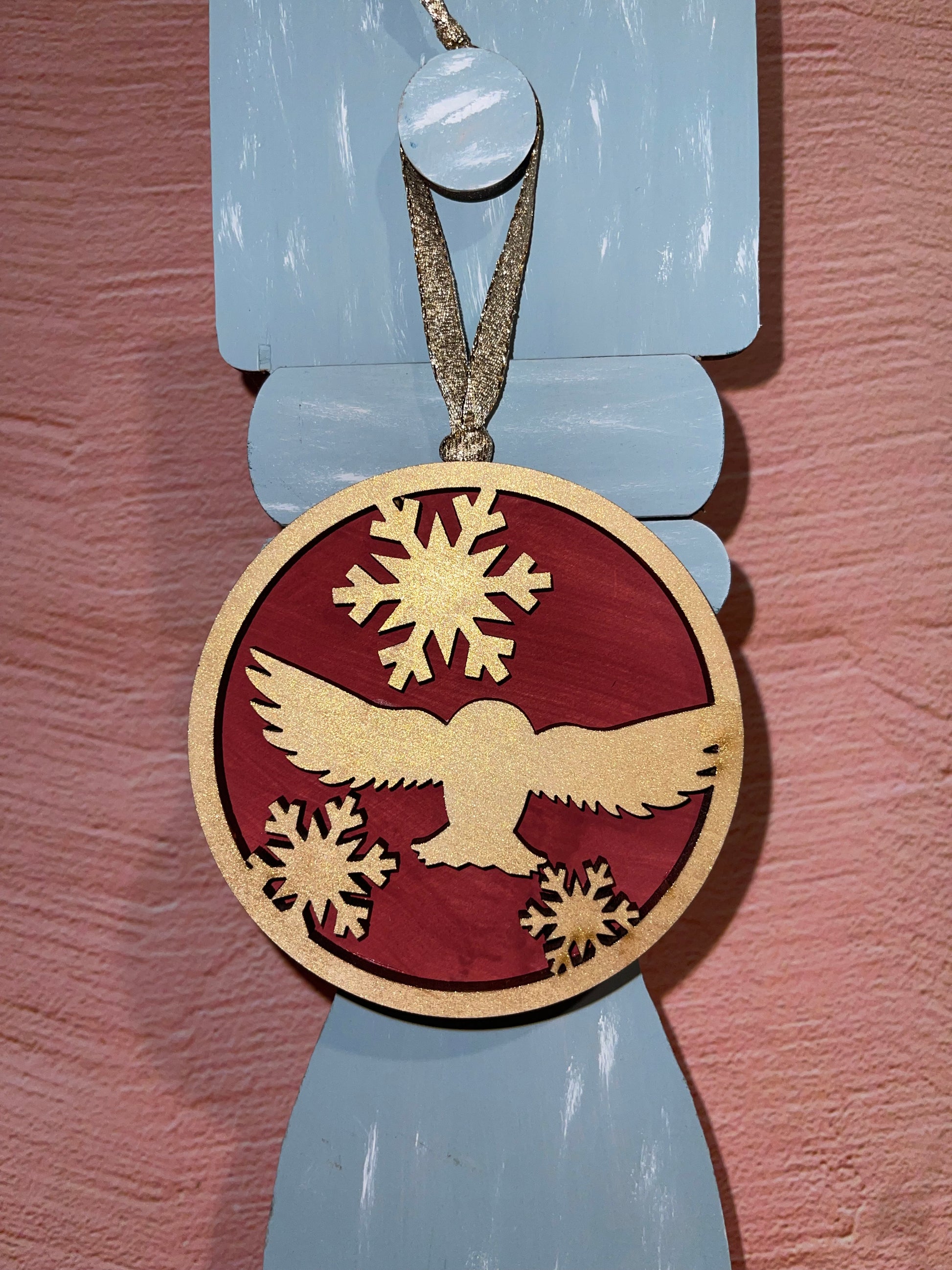 Each ornament measures just over 4" tall, not including the ribbon hanger.