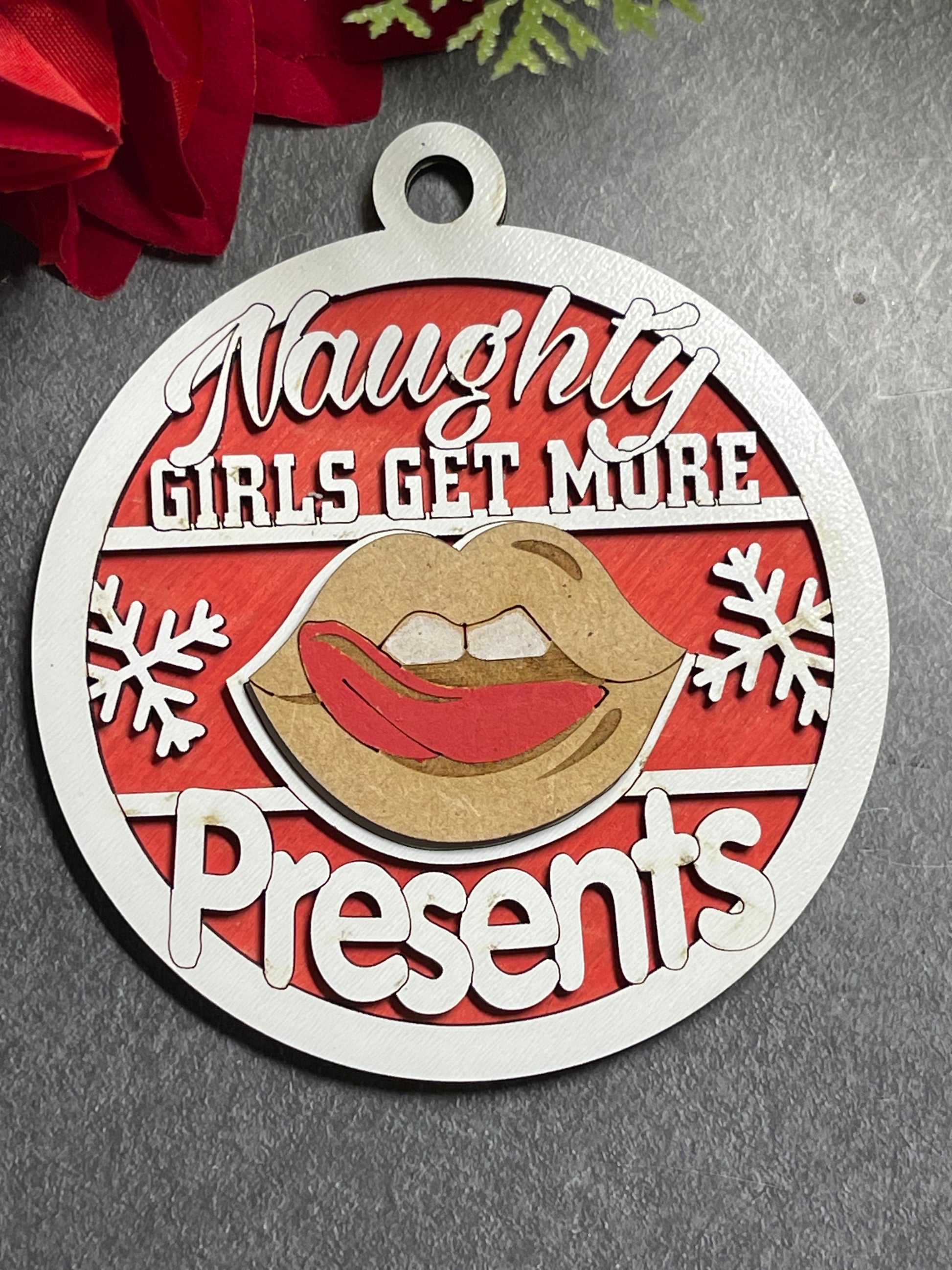 Add a playful touch to your Christmas tree with our Naughty Christmas Tree Ornaments. These sassy and naughty ornaments are the perfect gift for your snarky and sexy friends. Each ornament measures just over 4" and is made of 3 layers, giving depth and character to these ornaments, instead of a flat, one-layered ornament.