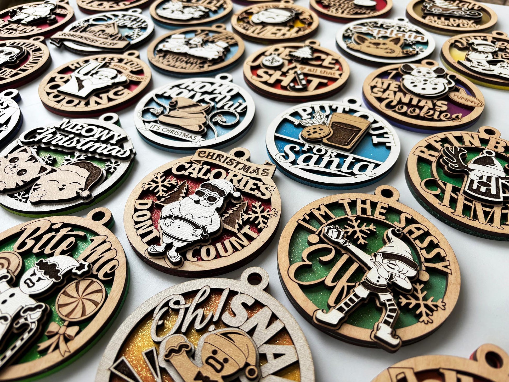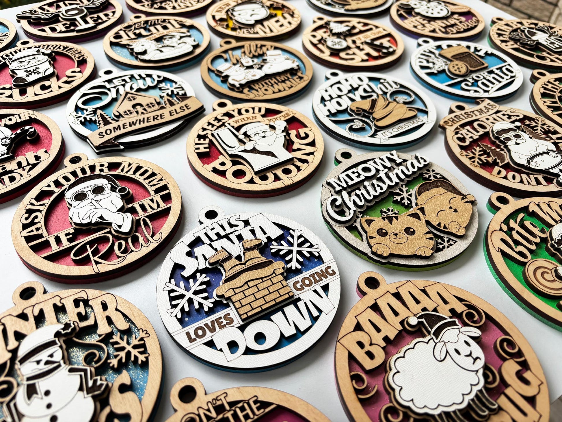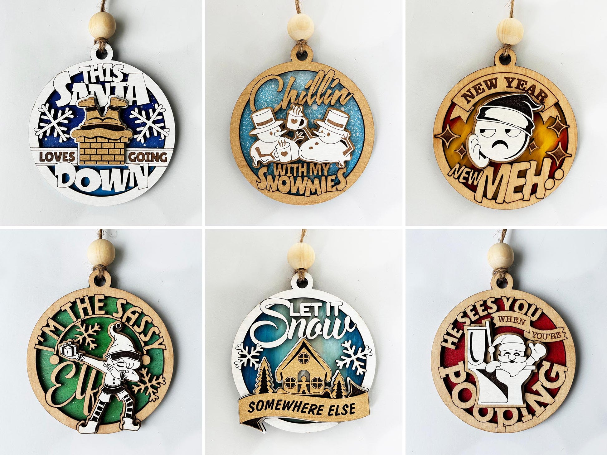 Add some sassy fun to your Christmas tree with these clever ornaments! With one for every situation, they are sure to generate laughter and make for a great gift. Expertly crafted with holiday spirit and sassiness in mind, these are a great addition to any tree. Each ornament measures just over 4" and is made of 3 layers, giving depth and character to these ornaments, instead of a flat, one-layered ornament.