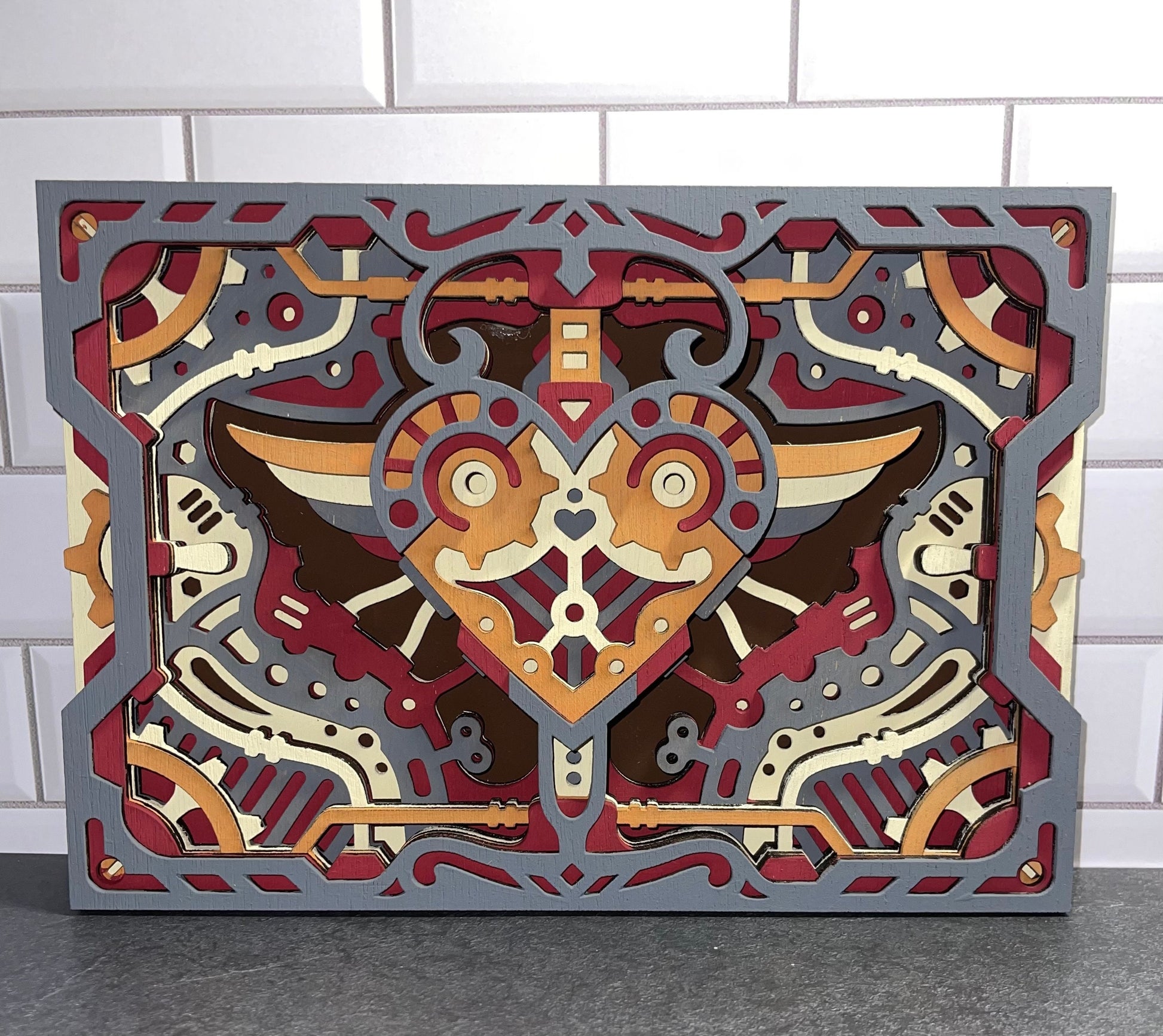 Steampunk Heart Layered Art; hand-painted, 3D, 8-layer wooden display
