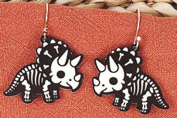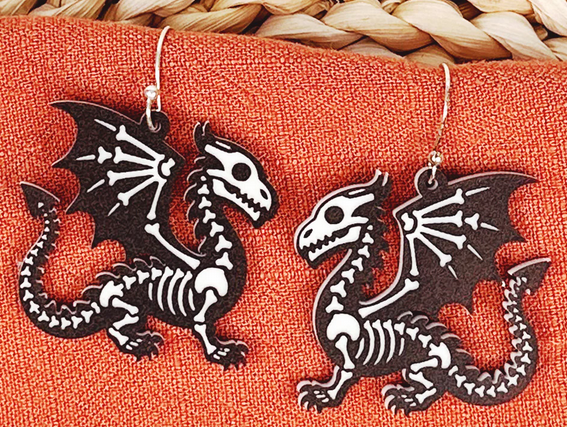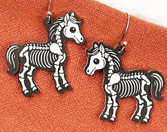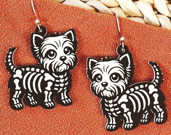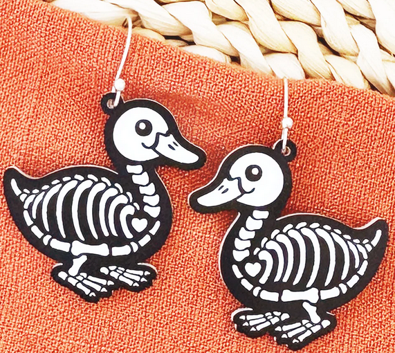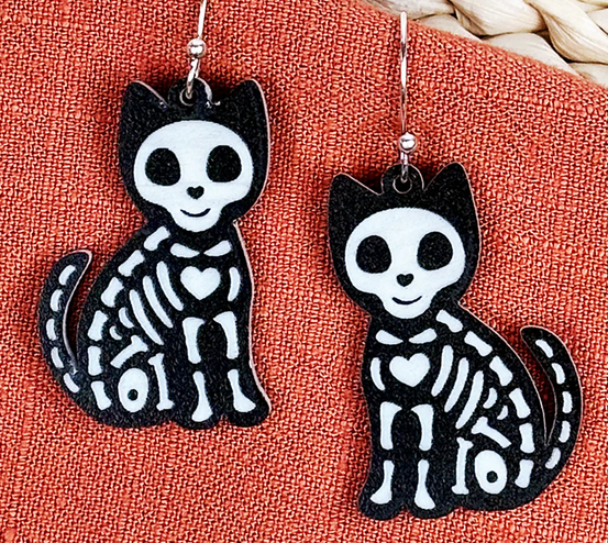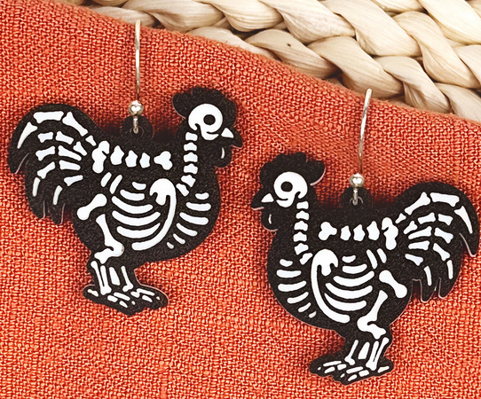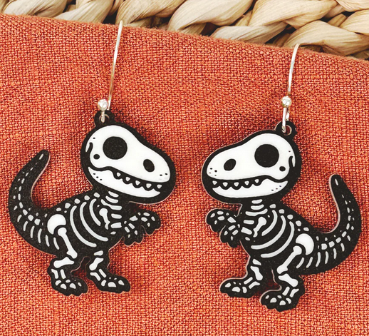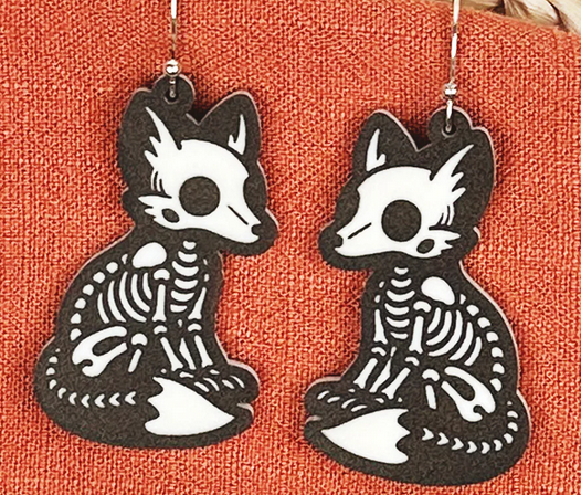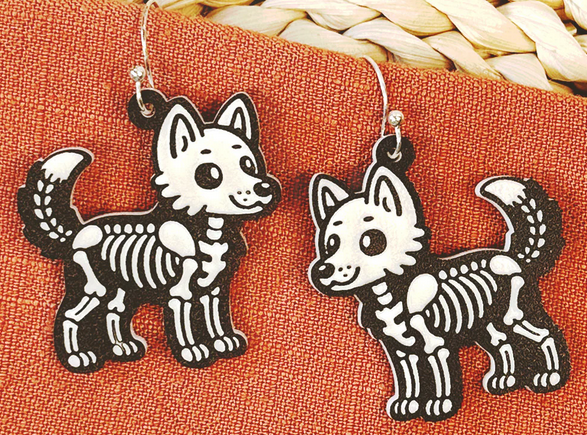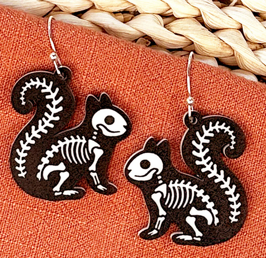 These Skeleton Earrings are a must-have for Halloween lovers! Featuring fun and cute animal skeleton dangles, they are the perfect accessory to get you in the spooky spirit. Made from high-quality, two-toned acrylic, these earrings are both stylish and festive. Add a touch of Halloween to your outfit with these unique earrings.