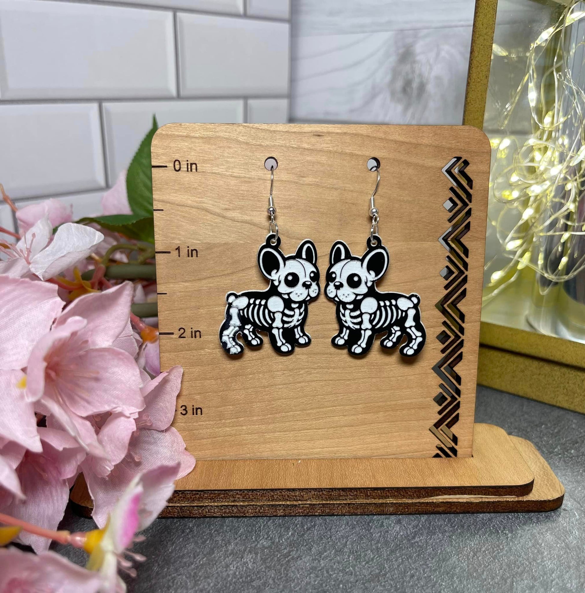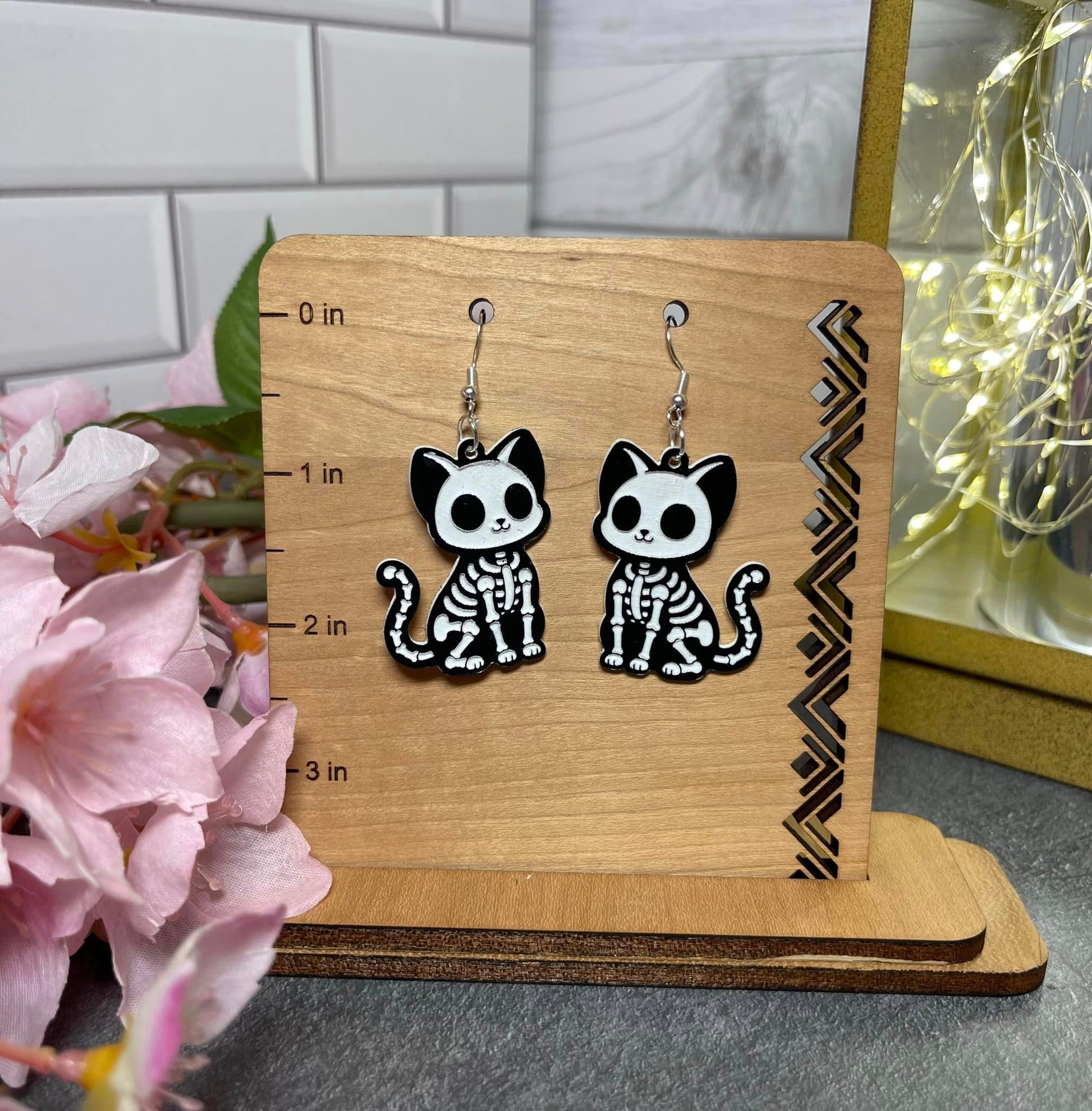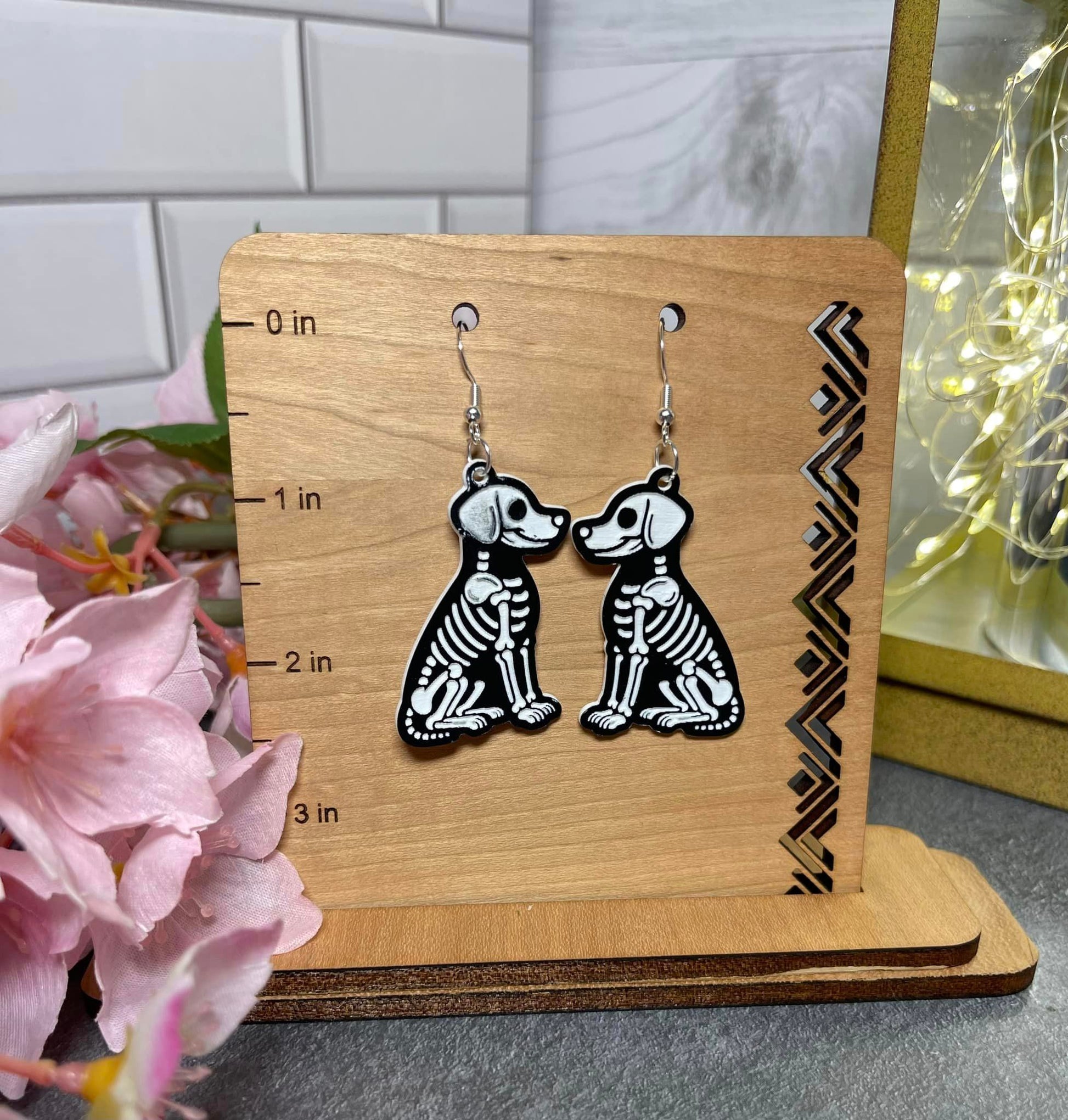 These Skeleton Earrings are a must-have for Halloween lovers! Featuring fun and cute animal skeleton dangles, they are the perfect accessory to get you in the spooky spirit. Made from high-quality, two-toned acrylic, these earrings are both stylish and festive. Add a touch of Halloween to your outfit with these unique earrings.